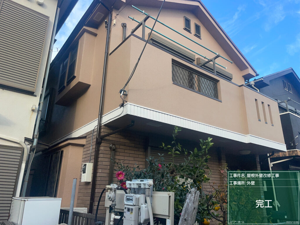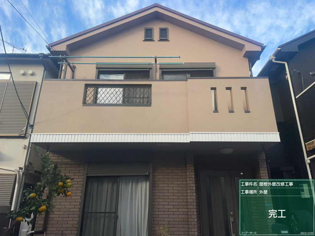 外壁塗装 海老名市 2023-12-21 最終更新日時 : 2024-12-06 nakayama1102 海老名市Y様邸にて外壁塗装工事完了 ベランダ下、タイルの色褪せを気にしていたので、白色を入れる事で分け目ができ、綺麗な仕上がりになりました😊 工事ご依頼ありがとうございました😊