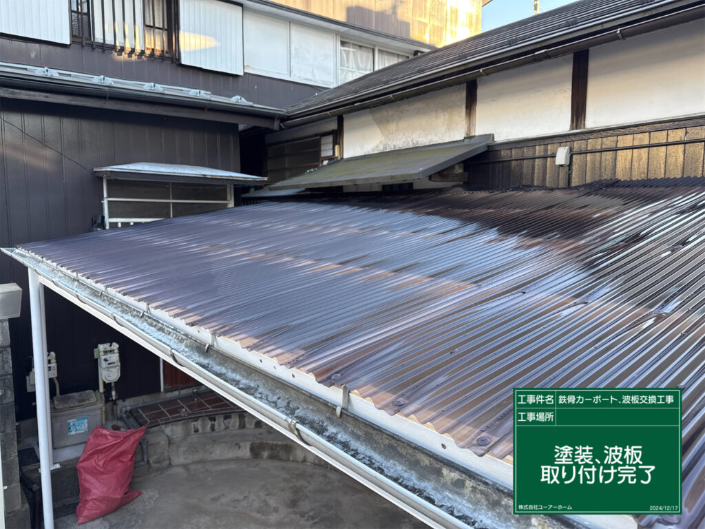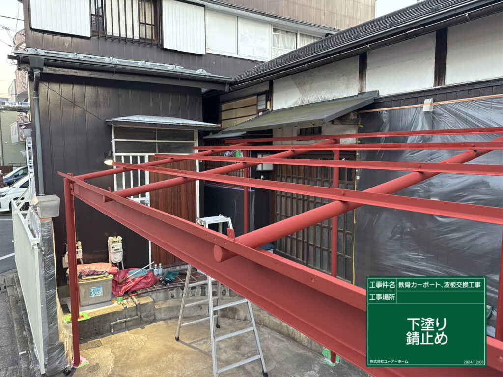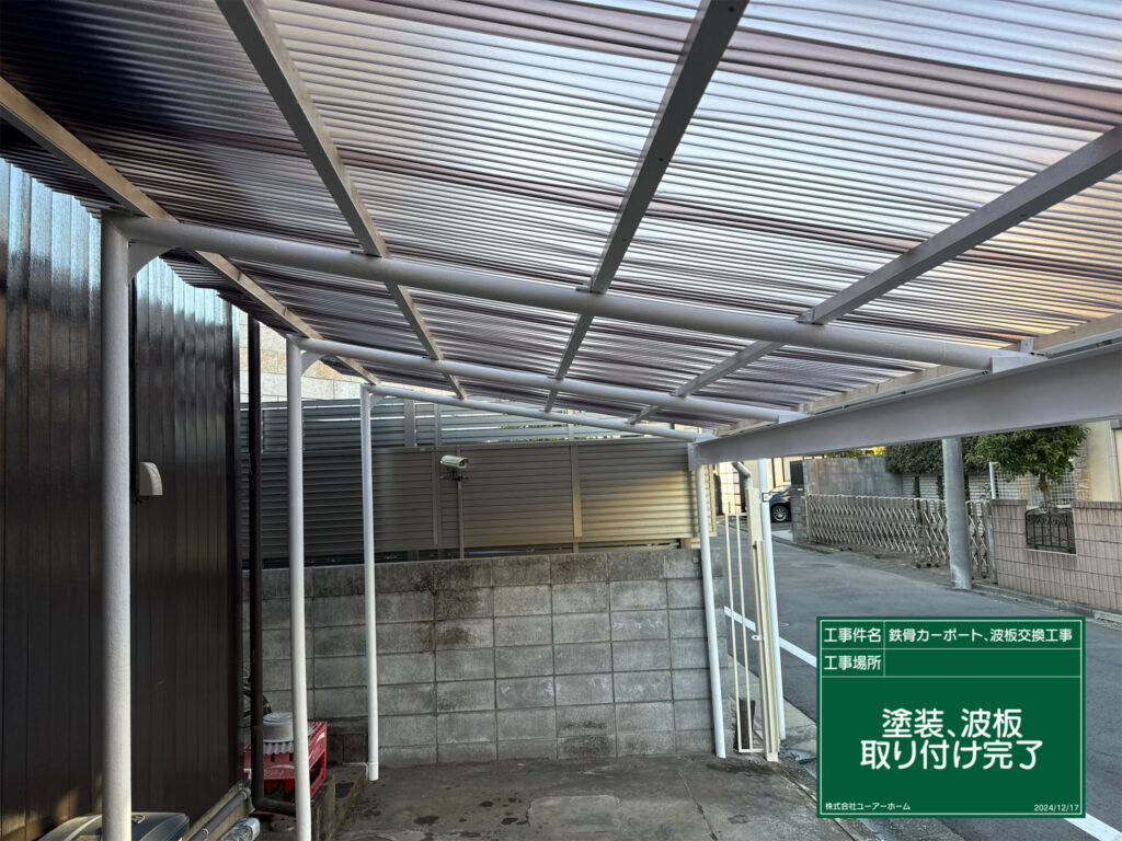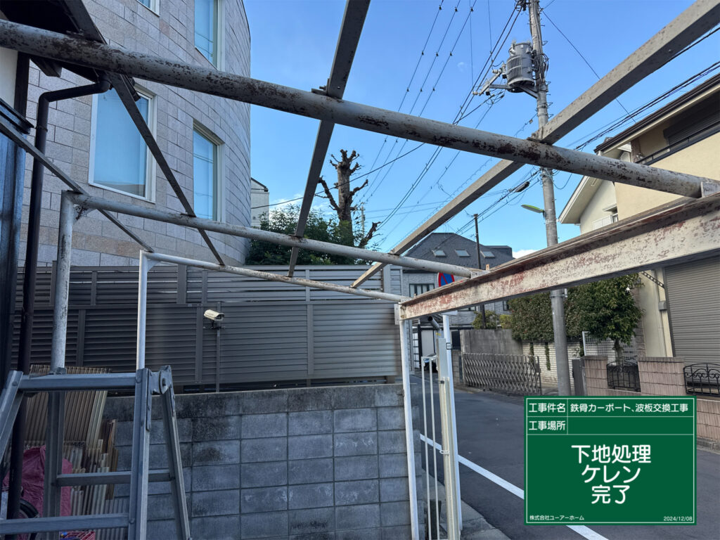 S様邸 駐車場の屋根交換と鉄骨の塗装