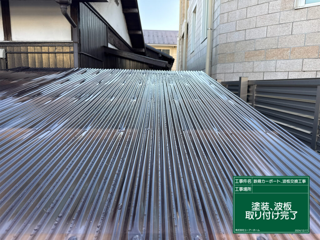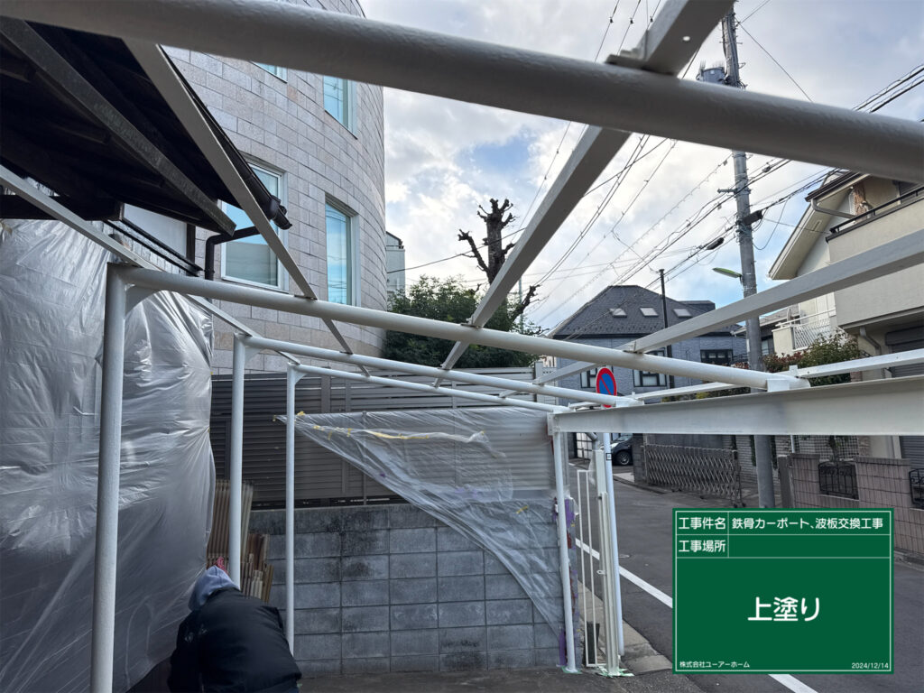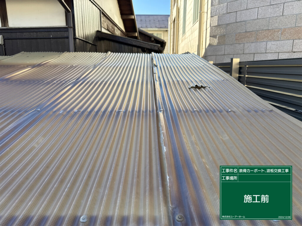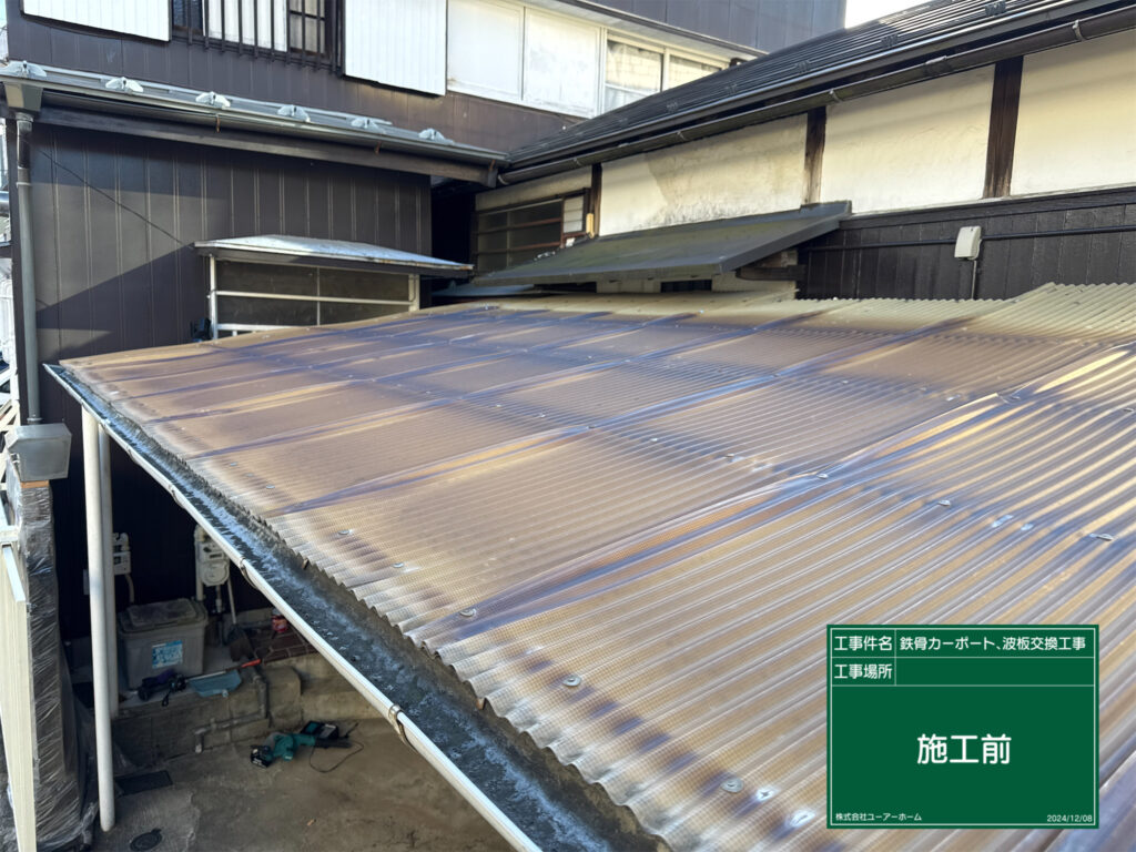 S様邸 駐車場の屋根交換と鉄骨の塗装