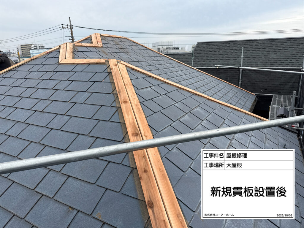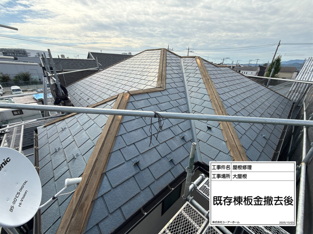 屋根修理 相模原市 2025-10-10 最終更新日時 : 2025-12-22 nakayama1102 S様邸にて屋根修理、屋根外壁塗装工事進めています! 今回は屋根修理のご紹介です。 既存の棟板金と貫板を新しい物に交換しています! 塗装作業も進めていきます! 引き続きよろしくお願いします😊