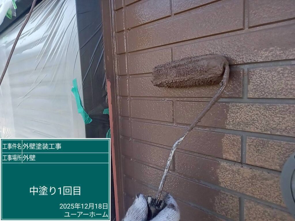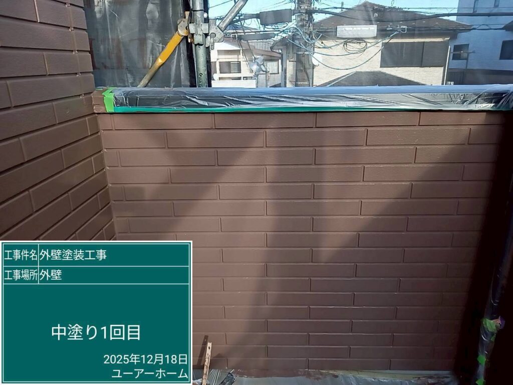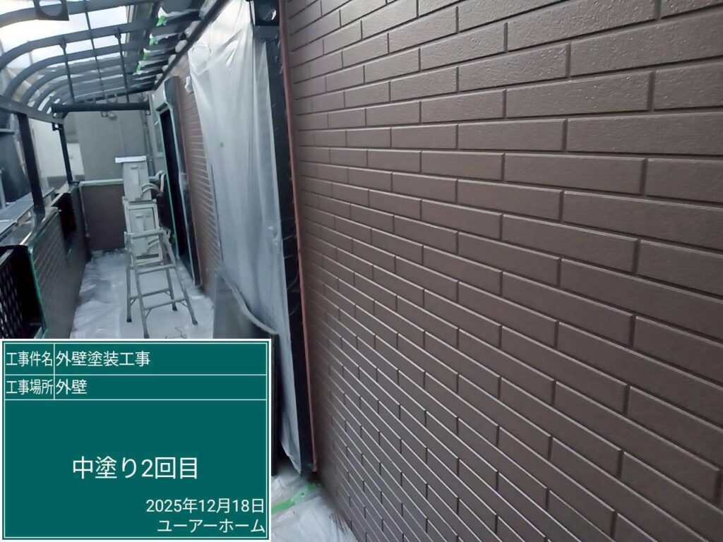 外壁下塗り1回中塗り2回(凹部分🎨コーヒーブラウン)