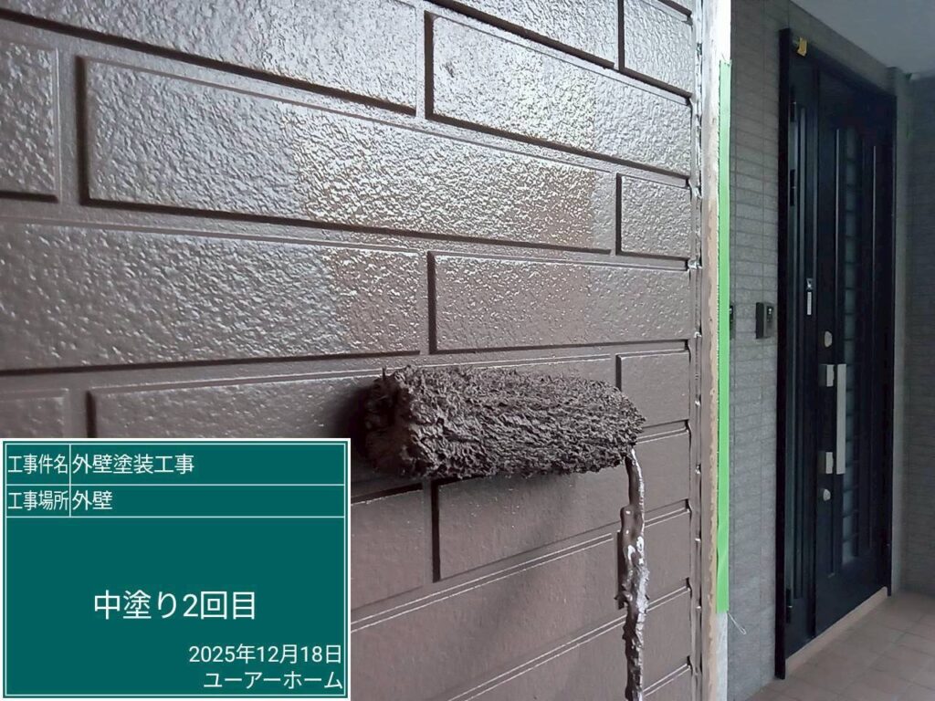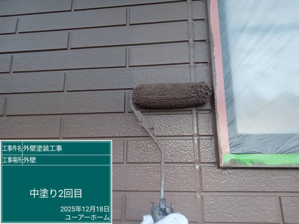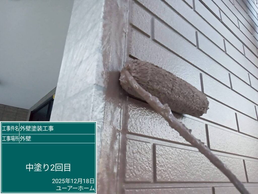 外壁上塗り2回(凸部分🎨ベイジュ)