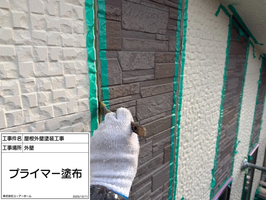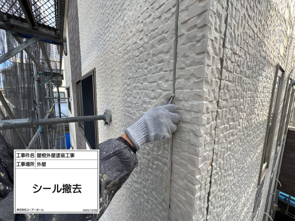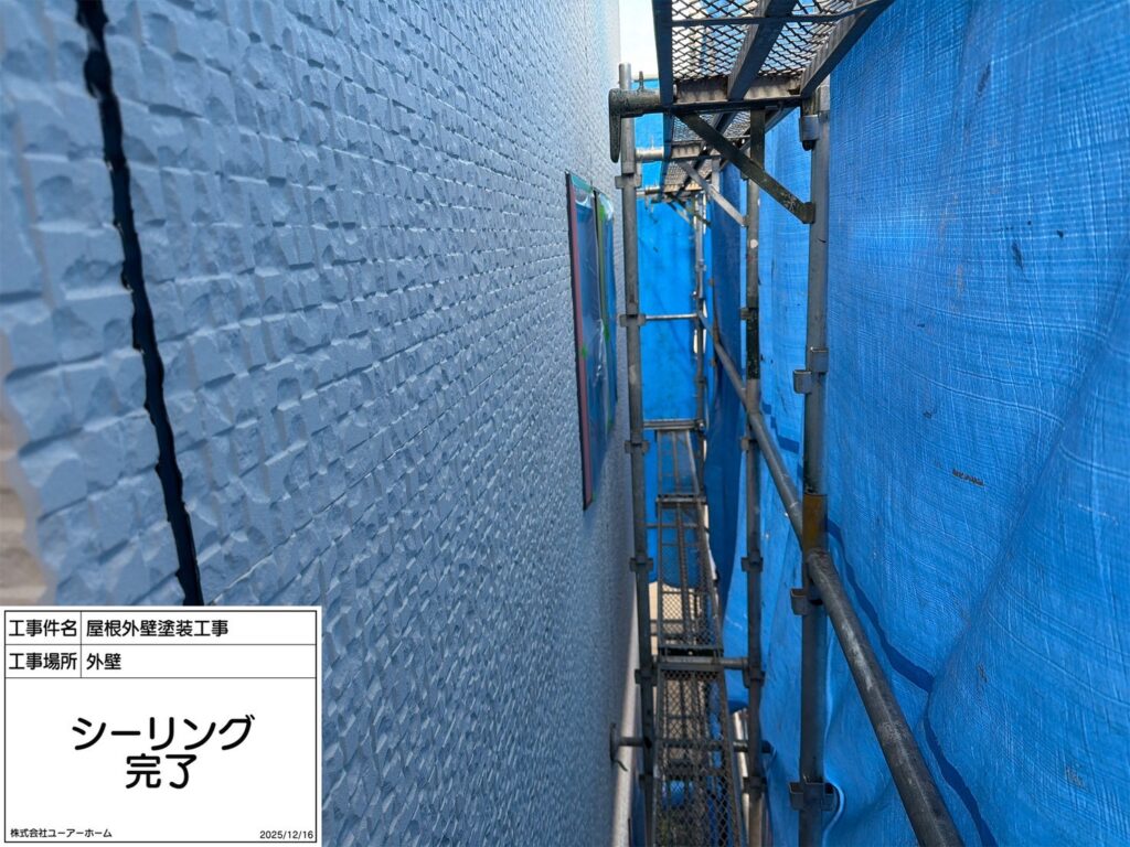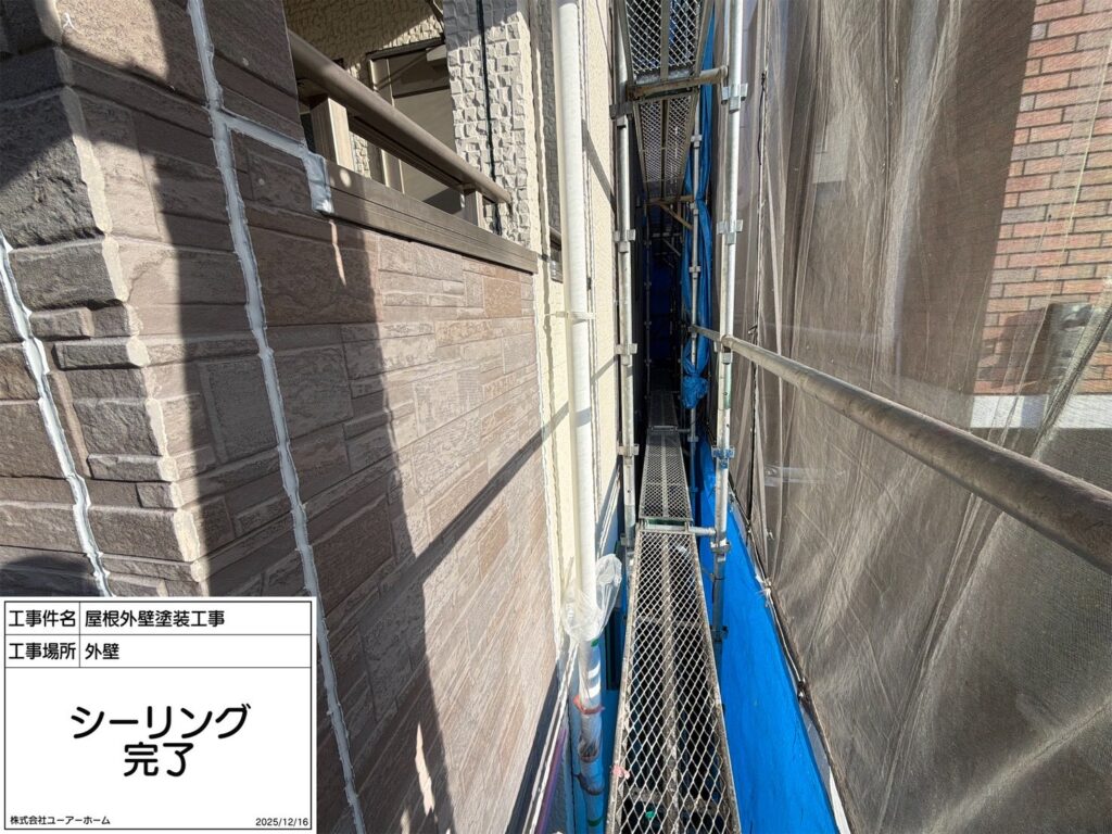 外壁の上塗りで使う色に合わせてシーリングの色も使い分けています。