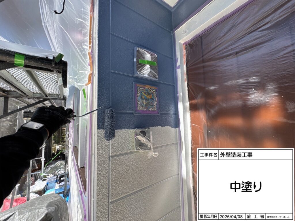 使用塗料 : フッ素Revo1000-IR🎨メイン壁スレートグレー/玄関面スレートブルー