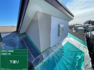 S様邸にて外壁塗装工事中 アステックペイント シリコンREVO1000-IR使用 参考価格 150万円 引き続きよろしくお願いいたします😊