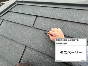 S様邸にて屋根塗装、外壁塗装工事中 参考価格 : 95万円 外壁塗料に合わせてコーキング共色施工 引き続きよろしくお願いいたします😊