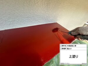 S様邸にて外壁塗装工事進めています! 今回は上塗り作業についての紹介です。 3回塗りで仕上げるため艶が増します🎨 引き続きよろしくお願いいたします😊
